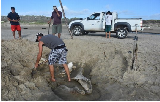 Encontraron restos óseos de ballena en la costa de Aguas Dulces