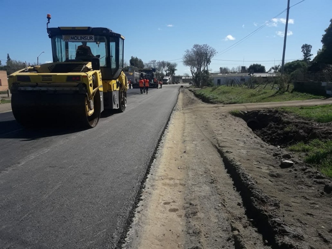 Se está colocando carpeta asfáltica en la Avenida principal de Villa Velázquez, en el marco de una fuerte inversión que se viene ejecutando en esta localidad.