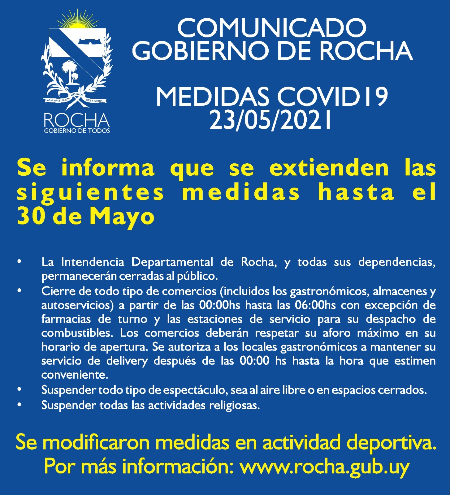 El Gobierno de Rocha anuncia la continuidad de las medidas sanitarias debido a la pandemia de Covid-19 hasta el próximo 30 de mayo.
