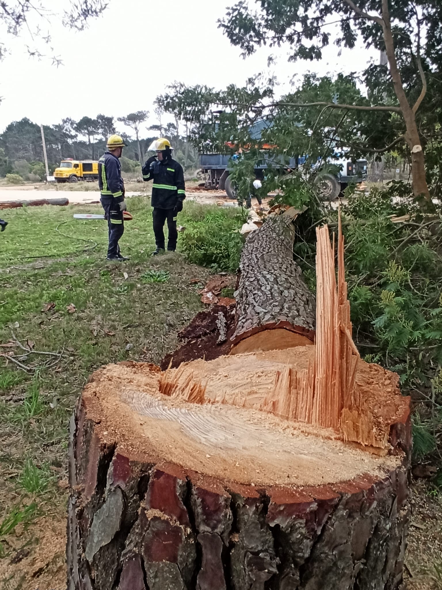 El representante de Cecoed Rocha Daniel Silveira brindó datos numéricos de los árboles que fueron intervenidos en la zona balnearia y mostró satisfacción por el trabajo que viene realizando personal de Bomberos y el Comando del Interior Región VI junto con la Intendencia de Rocha y el Municipio de la Paloma que participa con funcionarios y vehículos para el retiro de los árboles y ramas cortadas..