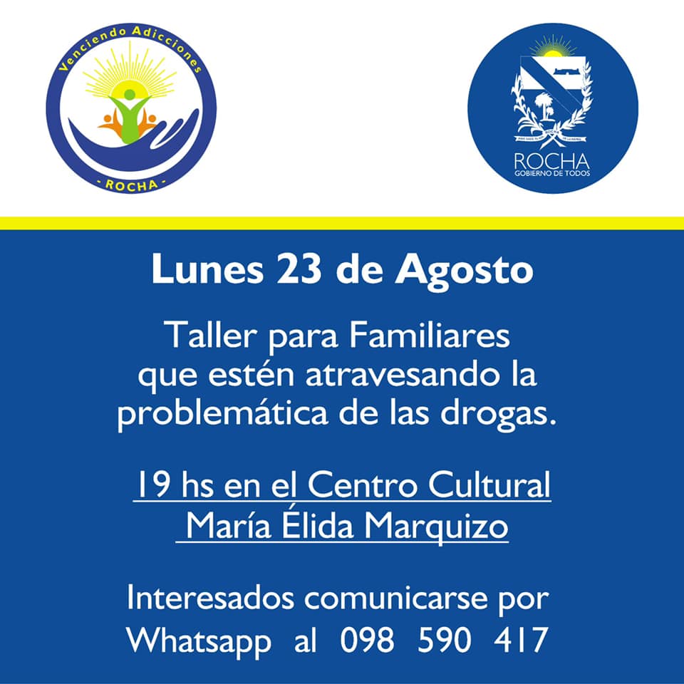 Este lunes se relizará un taller abierto en el Centro Cultural María Elida Marquizo organizado por el programa Venciendo Adicciones del Gobierno de Rocha. La encargada de dicho departamento invita a la población en general destacando que dicho taller es abierto. Se van a estar cumpliendo con las recomendaciones de protocolo correspondientes. Ofrecemos la palabra de Ana Serralta en la siguiente entrevista.