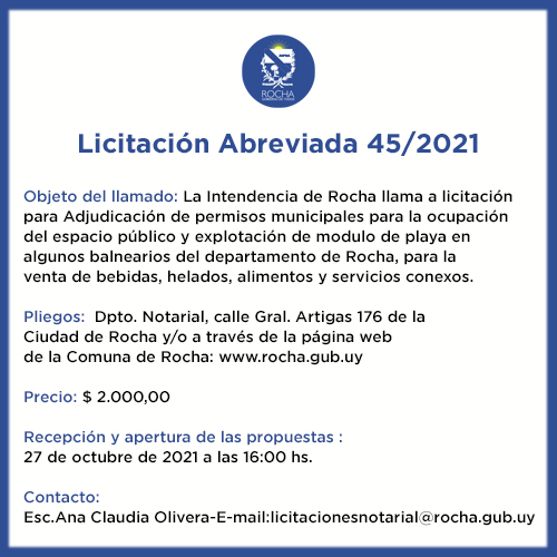 Contacto: Esc.Ana Claudia Olivera - E-mail: licitacionesnotarial@rocha.gub.uy