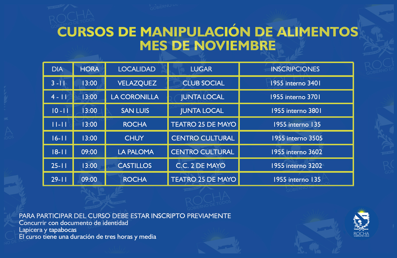 Fechas que restan para el cierre de agenda del mes de octubre para realizar el curso de Manipulación de Alimentos.