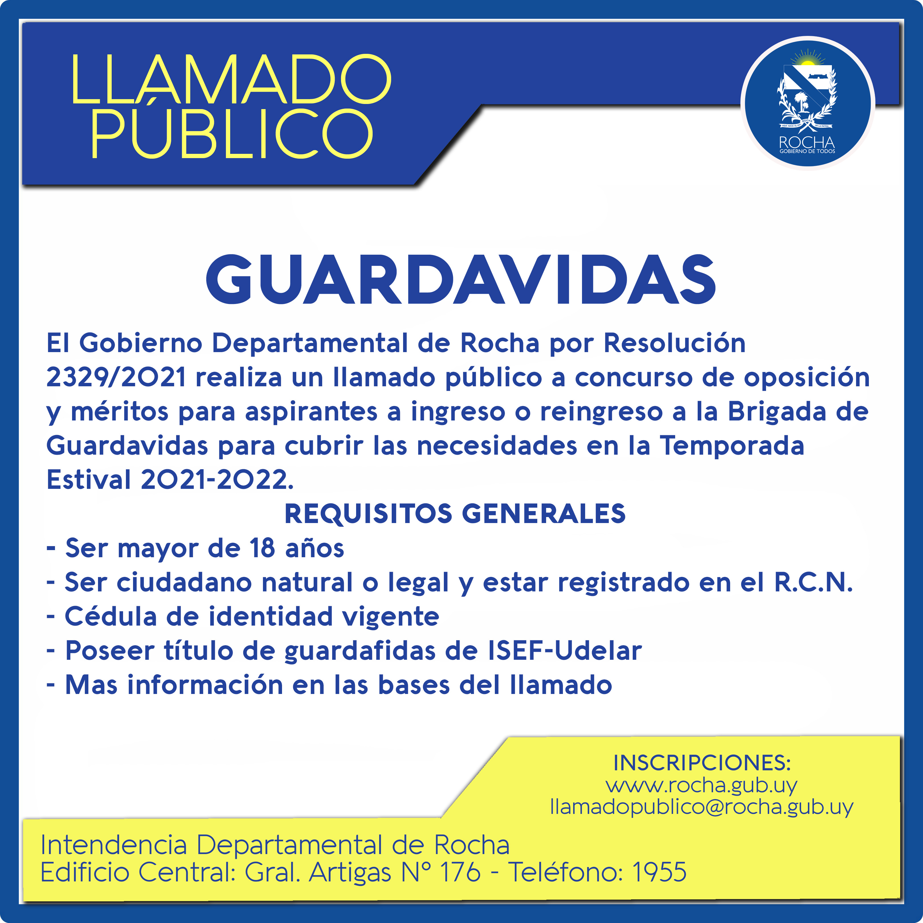 El Gobierno Departamental de Rocha por Resolución 2329/2021 realiza un llamado público a concurso de oposición