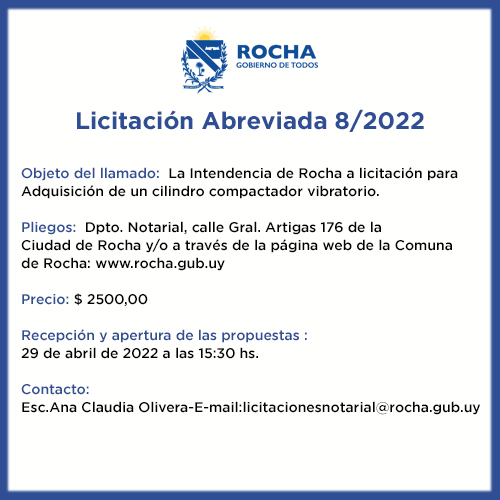 Contacto: Ana Claudia Olivera- E-mail: licitacionesnotarial@rocha.gub.uy
