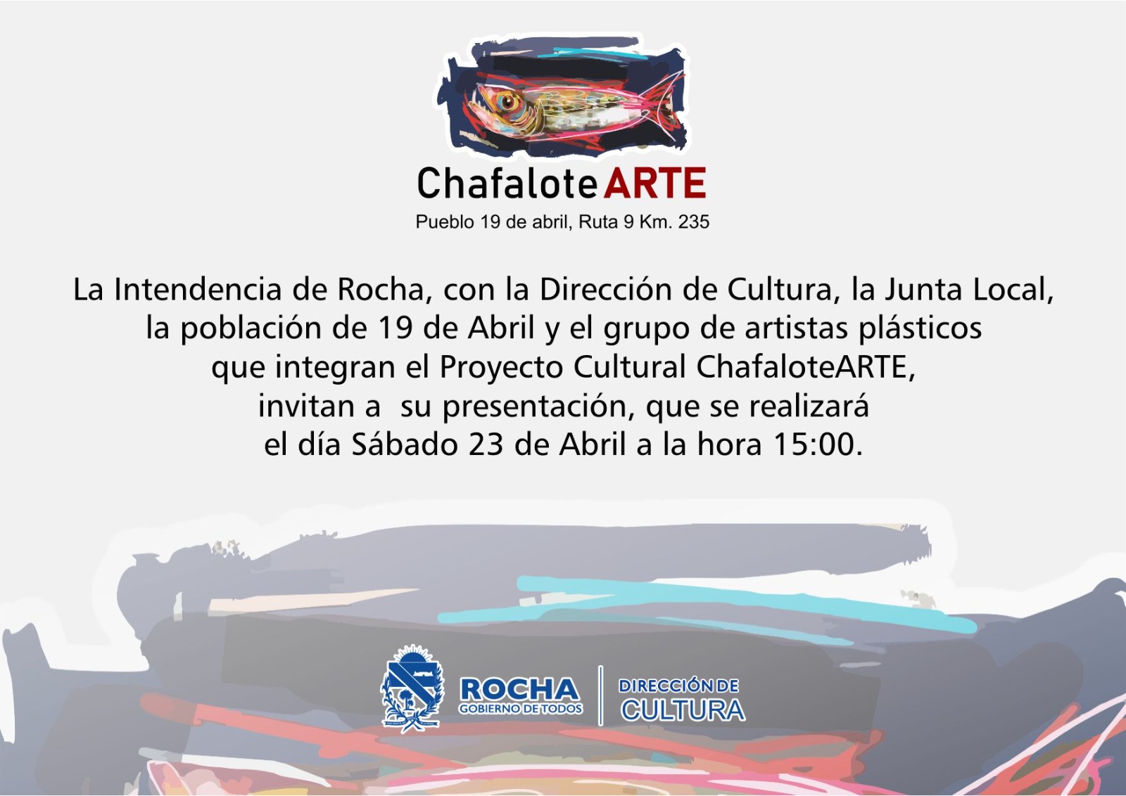 ChafaloteARTE que se realizará el día sábado 23 de Abril a las 15hs en pueblo 19 de Abril en Rocha.Dicho evento contará con la participación de mas de 20 artistas, pintores, escultores y muralistas que han trabajado