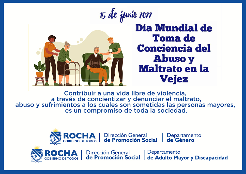 El Gobierno Departamental de Rocha fortalece el trabajo y la promoción de políticas públicas orientadas a la sensibilización, concientización y protección de los derechos humanos de las personas adultas mayores. En esta fecha establecida por las Naciones Unidas, tenemos la oportunidad para reflexionar y definir acciones eficaces de protección y promoción de los derechos de las personas mayores. La ONU, estableció que a medida que una persona envejece debe continuar disfrutando de una vida plena, independiente y autónoma, con salud, seguridad e integración. En este sentido, se debe reconocer que las personas mayores tienen derechos y libertades, incluso el de no verse sometidas a ningún tipo de violencia, destrato o discriminación fundada por la edad. Ofrecemos el mensaje de Blanca Repetto, responsable del Departamento de Género y de Mario Anibal Ortiz, del Departamento de Adulto Mayor y Discapacidad.