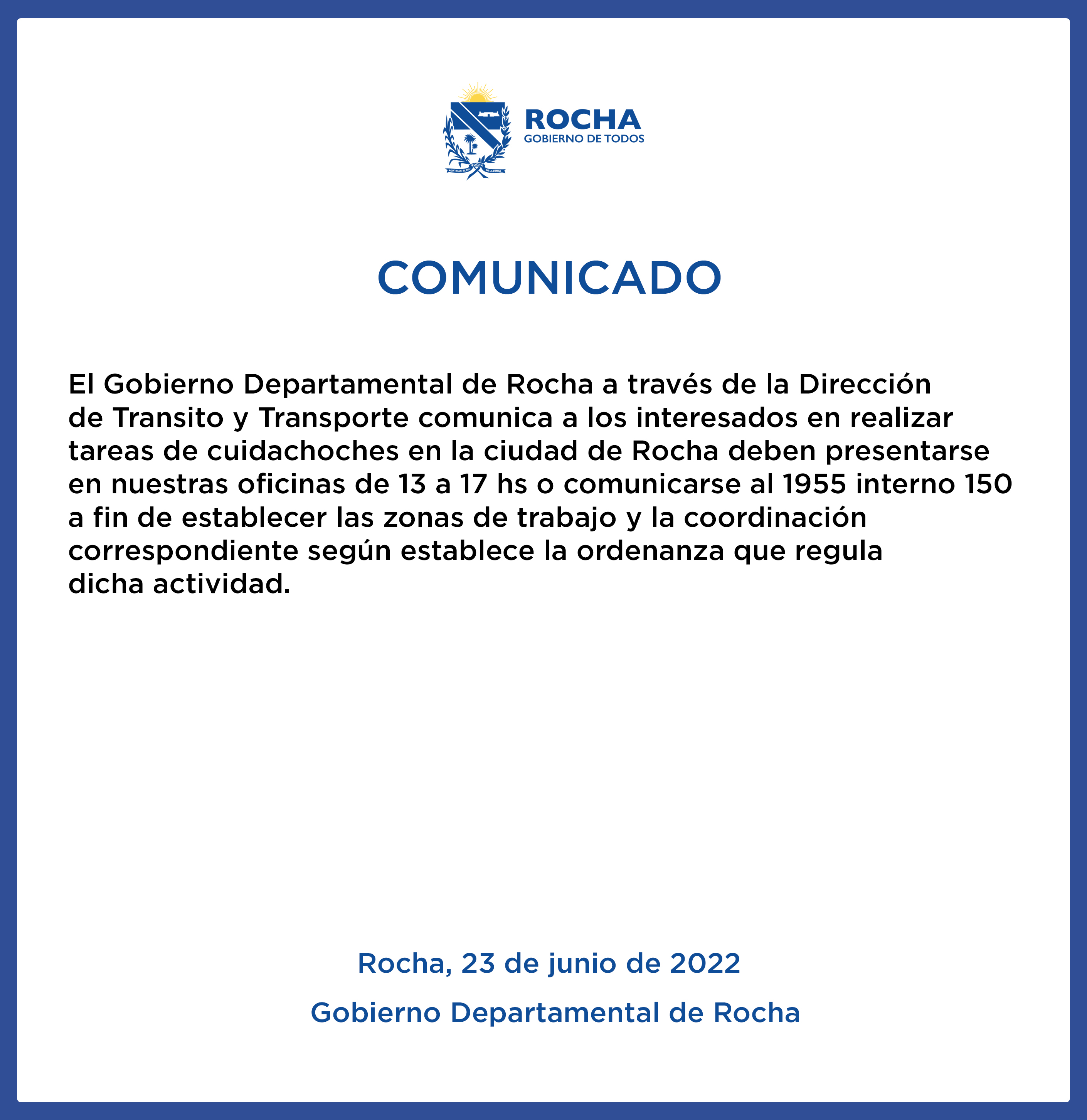 tareas de cuidachoches en la ciudad de Rocha deben presentarse