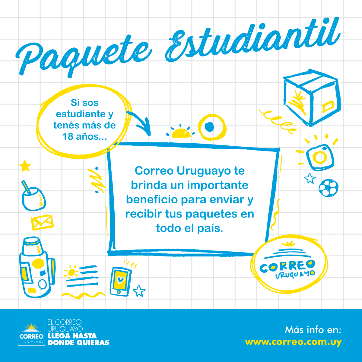 El paquete estudiantil es un servicio nacional que ofrece Correo Uruguayo a estudiantes de nivel secundario y terciario de todo el país mayores de 18 años.