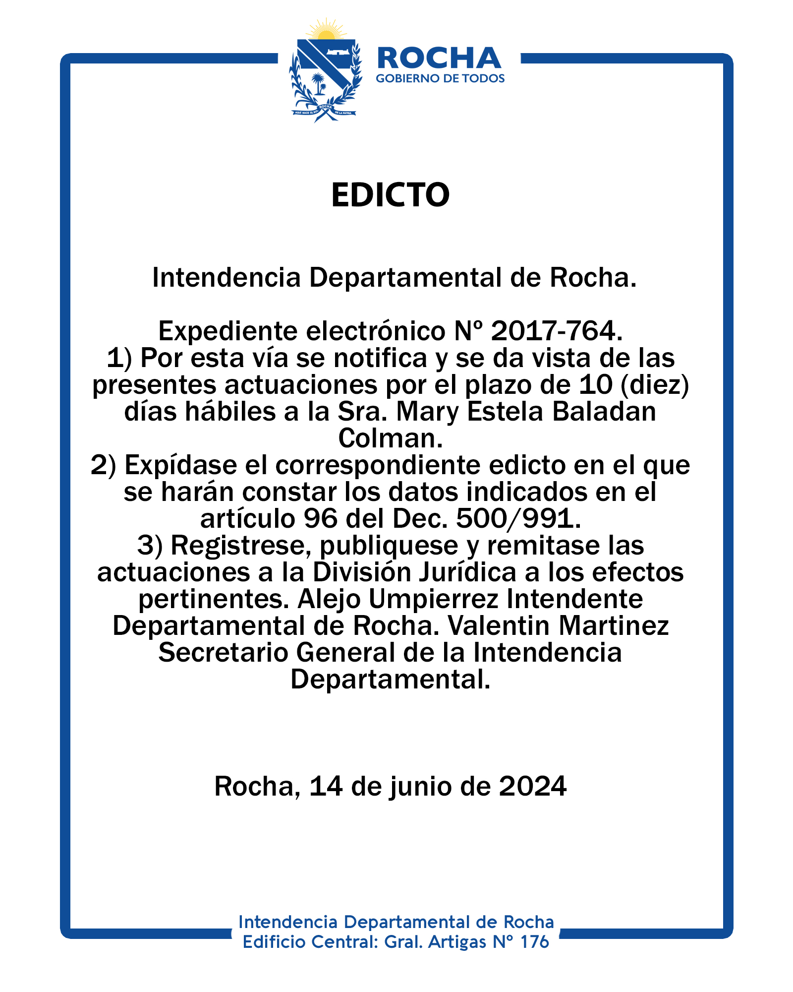Intendencia Departamental de Rocha. Expediente electrónico Nº 2017-764.