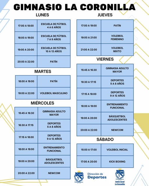 ¡Horarios Gimnasio Municipal de La Coronilla!