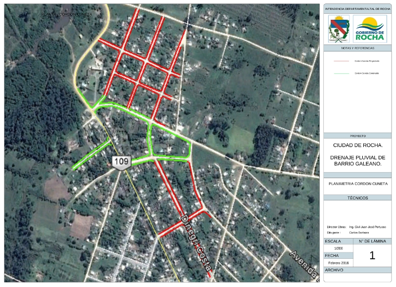 El color verde muestra la tarea culminada en cuanto a obra de cordón cuneta.