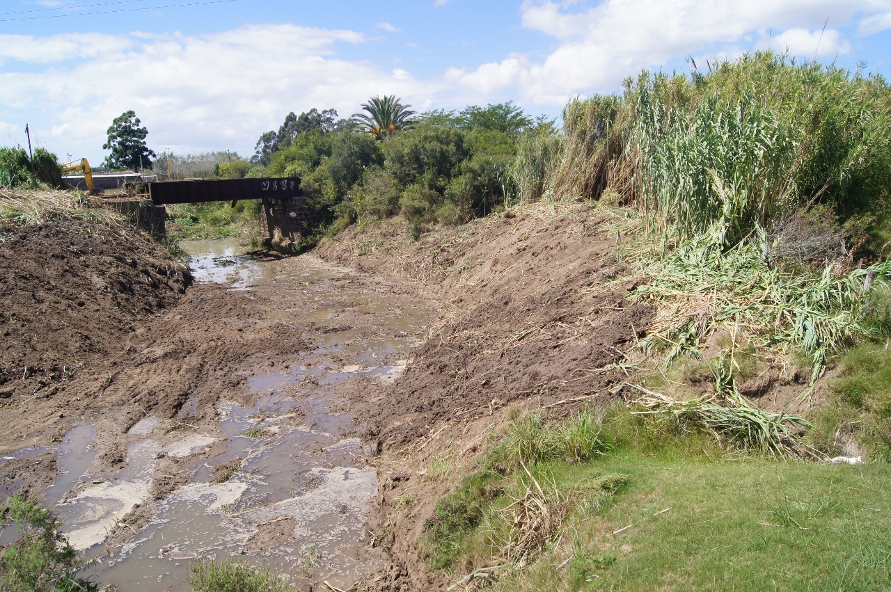 El avance de limpieza del cauce de la Cañada del Ejido determinó que este viernes llegaran al cruce con la Ruta 9. Donde se trabajo en retiro de vegetación del fondo del cauce y limpieza del entorno.