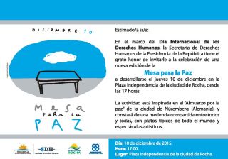 Mesa para la Paz - 10/12 - 17.00 hrs - Pza Independencia - Rocha
