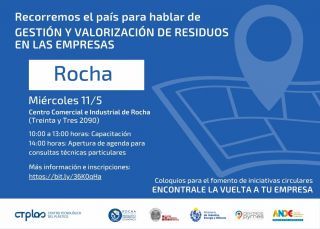 04-05-2022 La Intendencia departamental de Rocha a través de la Dirección de Producción y Desarrollo Económico, invita a interesados al taller de Gestión de Valorización y Residuos en las empresas, a realizarse el día 11 de mayo a las 10 hs, en el Centro Comercial e Industrial de Rocha. Inscripciones: https://bit.ly/3xChPwB (...)