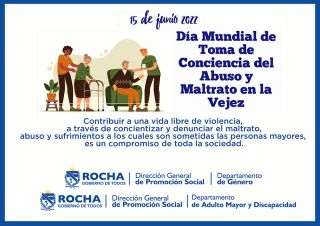 15-06-2021 "Estamos fallando como sociedad”, señaló Susana Nuñez, encargada del Departamento del Adulto mayor y discapacidad de la IDR, que más adelante informó sobre una serie de actividades que se realizarán en el marco de un día tan especial, como la exposición de cartelería y la realización de un video que se podrá observar en la web de la Intendencia. Hoy se conmemora un nuevo Día Mundial de Toma de Conciencia del Abuso y Maltrato en la Vejez. Desde el Instituto Nacional de las Personas Mayores expresamos nuestro compromiso de trabajo hacia la erradicación del abuso y maltrato en la (...)