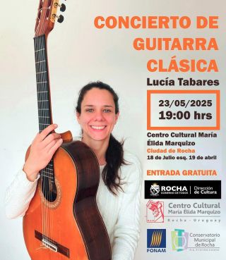 19-05-2025 En el marco de su gira nacional, apoyada por el Fondo Nacional de Música, el Conservatorio Departamental de Rocha y Centro Cultural María Élida Marquizo recibe a la guitarrista uruguaya Lucía Tabares. Un concierto donde disfrutaremos de un exquisito repertorio Latinoamericano y Español de la guitarra clásica, de la mano de una excelente artista. ENTRADA LIBRE y GRATUITA&nb (...)